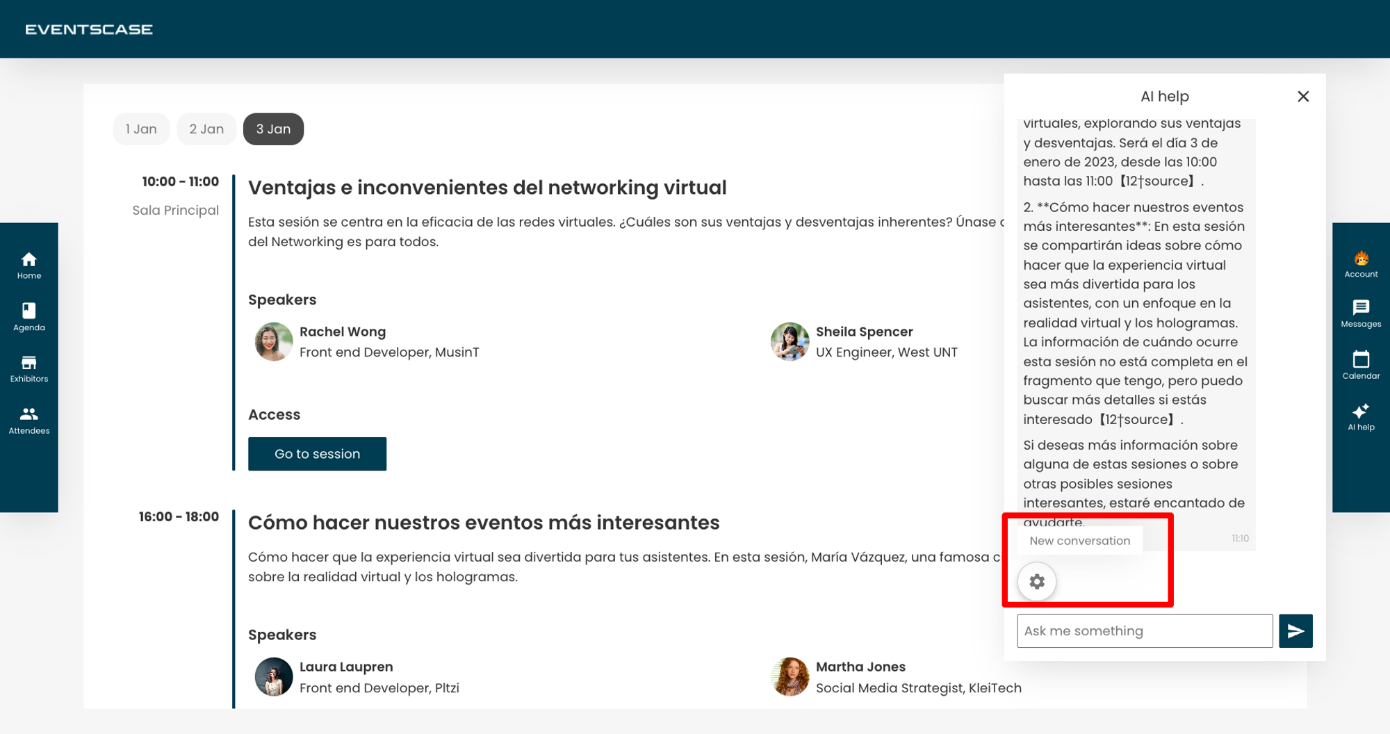 The AI only has information related to the event (schedule, exhibitors, attendee list, etc.), but we are not providing it with any information about the logged-in user.